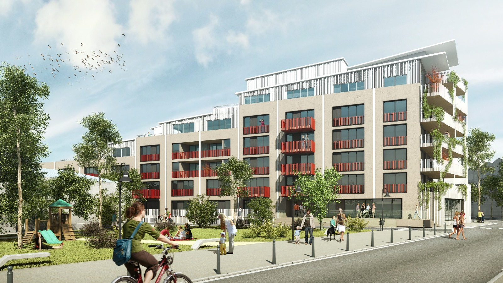 Appartement 74 m2 avec terrasse de 29 m2 au dernier étage (6/6) d'un immeuble aux Bassins à Flots.